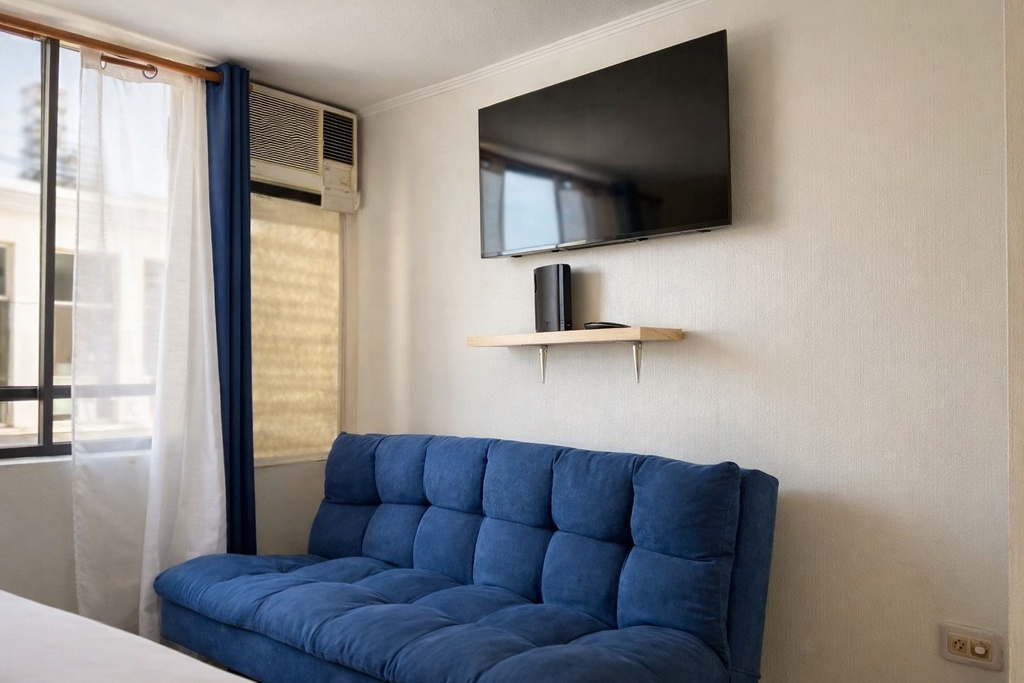 Apartamento Home-Studio con cama matrimonial y una sofá cama en el mismo espacio. Kitchenette equipada. Aire acondicionado/calefacción split. (Máximo 3 personas).